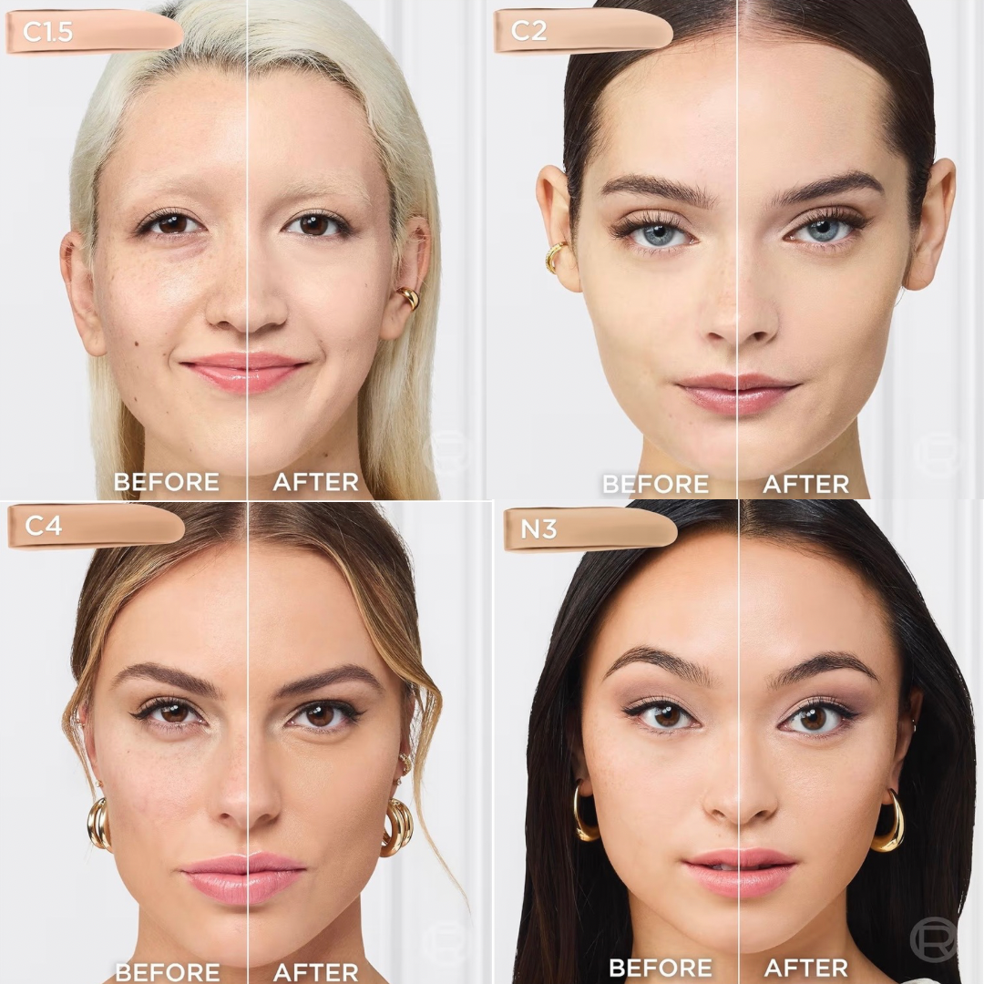 Base con fórmula líquida que retiene la hidratación y proporciona una cobertura media con un acabado natural que se adapta a cualquier color y textura de piel. Es tan fácil de difuminar que no notarás dónde termina tu base y dónde empieza tu piel.